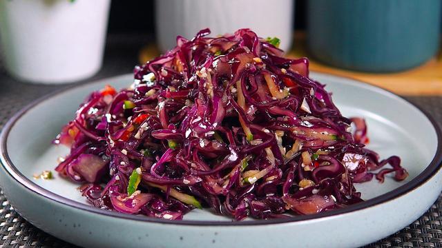 注意:紫甘蓝如果炒太久,颜色会变灰,营养也会打折,建议快炒或凉拌。