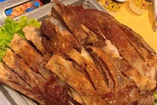 外皮鼓泡像金色气球,一刀下去“咔嚓”比苹果提示音还脆,肉缝里渗出的油珠自带草原滤镜。
