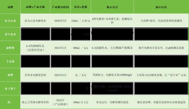 2025-2026 电解质饮料入局品牌,镁经小组制图