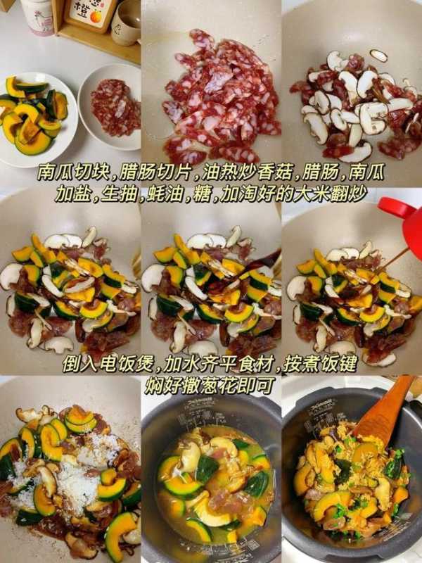 把大米放进电饭煲,加平时煮饭的水量,放入南瓜块,滴几滴油、加少许盐提鲜,按下煮饭键。