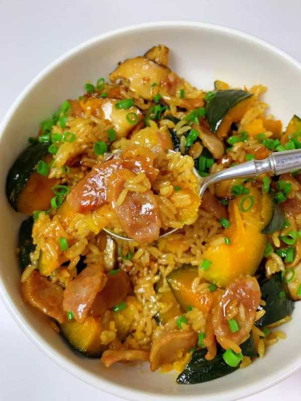 饭煮好后,把米饭和南瓜搅拌均匀,吃着又香又软,不用单独做菜,一锅就能吃饱吃好。
