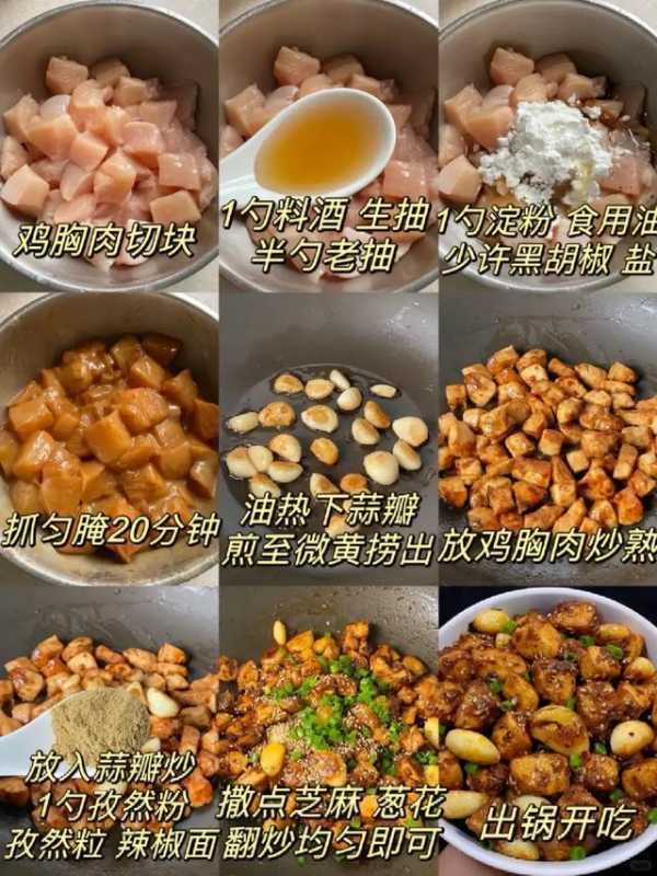 其实经常吃大蒜对身体好处很多,直接吃很辣,做成蒜香孜然鸡胸肉,香到吃了还想吃。鸡胸肉切成小块,大蒜剁成末,鸡肉里加生抽、盐、孜然粉、料酒,再放一半蒜末,抓匀腌15分钟。