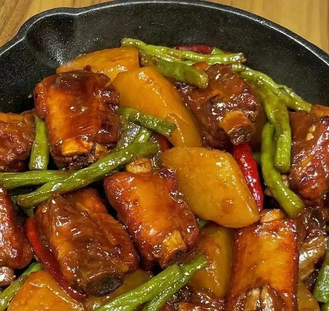 我上次,哦不对,就是上周吧,做了一次土豆豆角炖排骨,排骨我炖了快四十分钟,脱骨得很,土豆面面的豆角也入味,连吃了两顿,感觉走路都轻快的很。