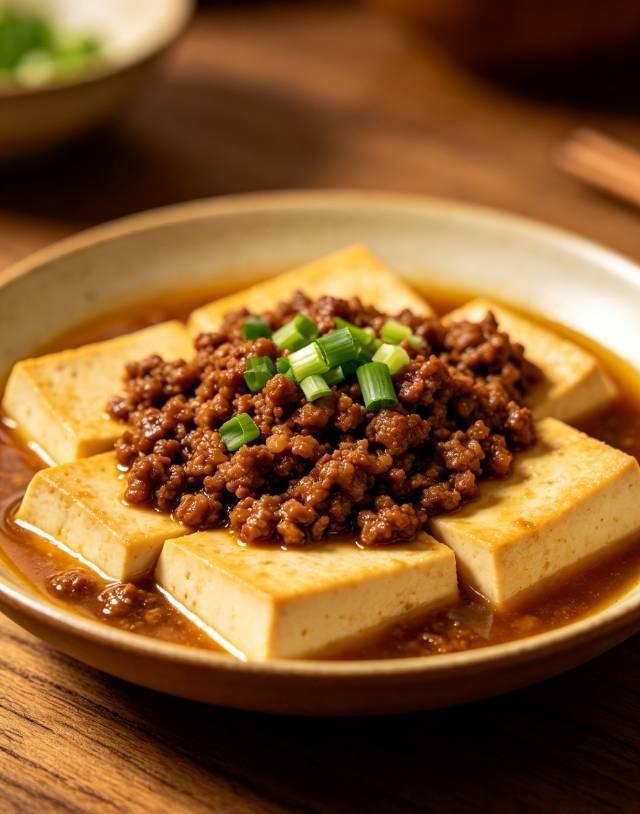 最后一道,是用瘦肉末和嫩豆腐做的“温柔菜”。