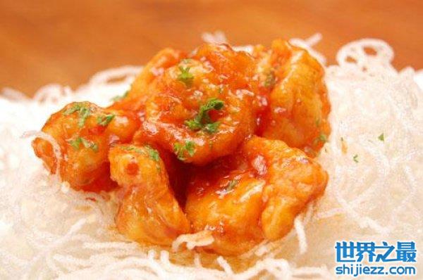 这道菜在中国貌似并不是很流行,不过在日本却很受欢迎,在日本料理套餐里九成以上会出现这道菜。说是干烧虾仁,其实更像是糖醋虾仁,能够拉丝的糖浆勾芡浇在海虾仁上,一般还会配一叠生菜丝,和着一起吃,又有脆脆的口感又能压一下糖浆的腻歪。