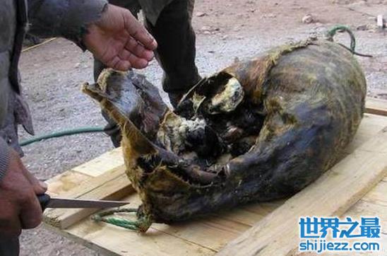 基维亚克,来自爱斯基摩人的食物,在死去的海豹身体里放二三十只海鸟,密封好后埋到冻土层发酵两三年再取出海鸟食用,有类似糠和纳豆的口味,以及发酵混合物合在一起的味道。