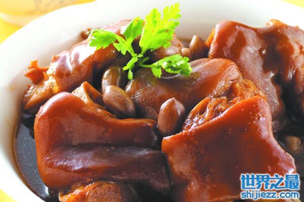 这道采用多种中药材、酱油、米酒等调料长时间炖煮,是台湾特有烹调技法,配合着花生和猪脚的主要食材经过长时间炖猪而成的台湾传统特色美食,而这道经过长时间小火慢炖的菜品,猪脚皮肉香滑富有弹性,具有养颜美容的功效。