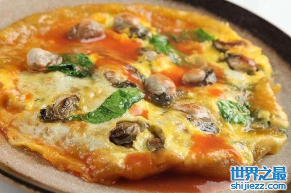 台湾蚵仔煎是台湾最具知名度的小吃之一。。这道起源于福建泉州的,利用台湾特产蚵仔、番薯粉、水混合而成经过煎制而成,是在闽南、台湾和潮汕等地广为流传的大众小吃,而最终的成品还会加上甜不辣酱,具有鲜香的口味。