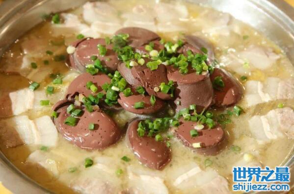 白肉血肠是东北地区满族的传统美食,是东北人都喜欢吃的一种美味,也是当地城乡居民杀年猪后宴请亲友的一道菜。血肠是将猪血和其他配料灌入肠衣中制作的,再配上猪肉和酸菜一直煮,味道十分独特。