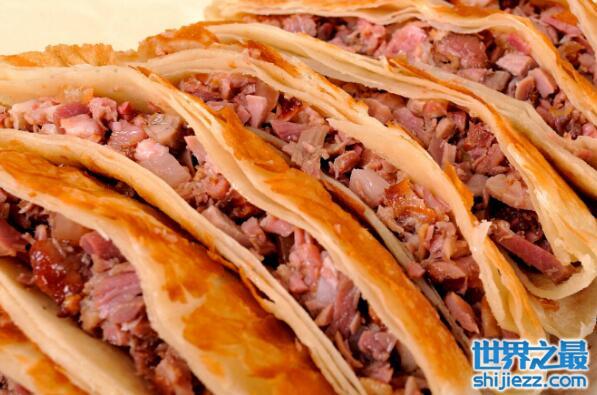 李连贵熏肉大饼是起源于吉林省四平市的一道传统特色小吃,在沈阳几乎是无人不知,无人不晓。饼中的熏肉是使用十多种香料和中药秘制而成的,夹在饼中一起吃味道十分酥软咸香。