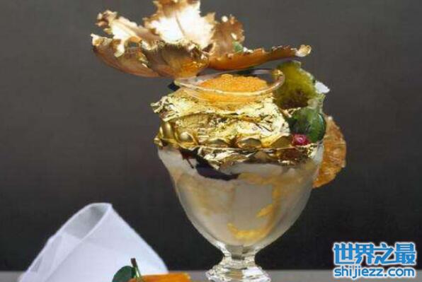 这款来自意大利的金箔圣代使用的是来自南太平洋塔希提岛的香草冰淇淋、来自马达加斯加的香草豆以及来自委内瑞拉的昂贵的苏奥巧克力制作的,最后再用食用金箔覆盖着,被装在一个含有18克拉黄金的水晶高脚杯中,售价为1600美元。