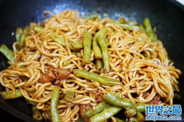 豆角焖面是北方传统特色小吃,利用四季豆、五花肉和面条等原材料,经过炒制和焖煮制成,这个品尝起来咸香味浓、脆嫩可口、筋韧鲜香的美食饮食利用焖至的方式制作,这道美食也因此而得名。