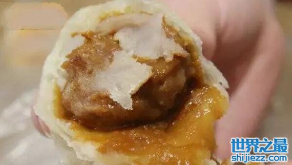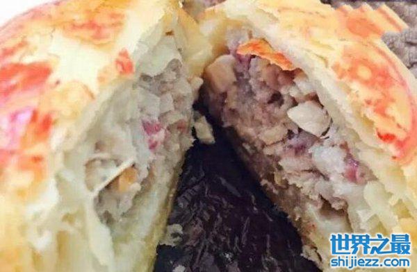 蟹粉鲜肉月饼,据说这种月饼由于新鲜的市场加上吸满汁水的外皮,刚刚出炉的时候是最香最好吃的。