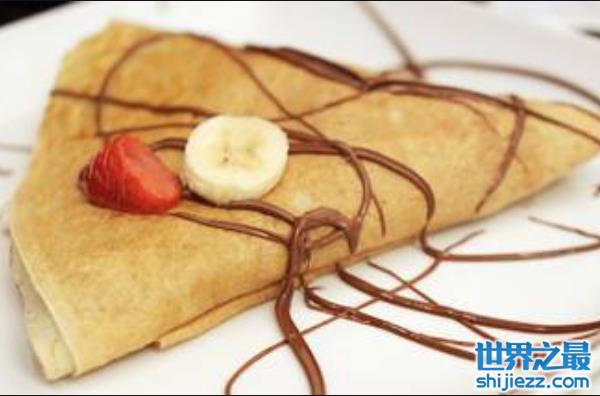 可丽饼源自于法国西北部的布列塔尼地区,因为那里的天气非常寒冷,所以可丽饼就成了当地人的街头暖手“奶茶”。可丽饼用小麦粉制作就是甜味,用荞麦粉制作就是咸味,再抹上巧克力酱就别有一番风味。