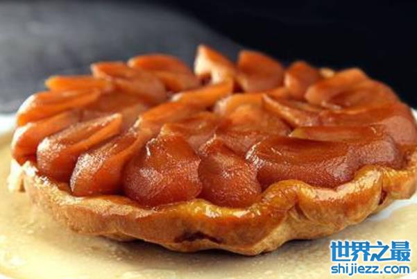 苹果挞在法国也被称为Tarte Tatin,它是由Tatin姐妹在1898年发明的,制作方法非常简单,就是将苹果置于焦糖和面糊之间,这样烤就会形成焦糖在上、苹果在中、面皮在下的苹果挞。法国人非常爱吃苹果,所以基本上每个家庭都会制作苹果挞。