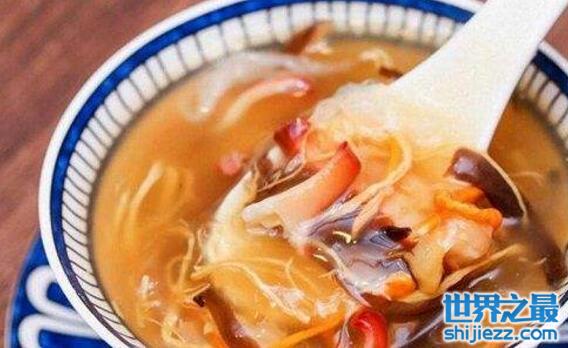 碗仔翅里面的食材丰富有木耳、猪肉丝等等,再加入高汤,虽然里面没有曾经的鱼翅,但是吃起来和鱼翅是有的一拼的。
