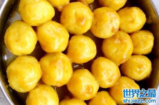 咖喱鱼丸是香港人的最爱,也是香港街头最受欢迎的一种小吃。咖喱鱼丸非常有特色,在制作上的话主要是以玉米淀粉和鱼混合在一起,然后油炸至金黄色,口感上极其的诱人,很多人到香港旅游都是品尝一口。