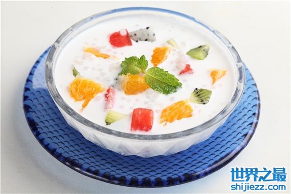 文昌椰汁西米露是海南文昌特别的清凉美食。西米露又叫西谷米,是印度尼西亚特产,西米有的是用木薯粉、麦淀粉、苞谷粉加工而成,有的是由棕榈科植物提取的淀粉制成,是一种加工米,形状像珍珠。西米有小西米、中西米和大西米三种,经常被用于做粥啦羹啦和点心当中。西米主要成分是淀粉,有温中健脾,治脾胃虚弱、和消化不良的功效。西米还有使皮肤恢复天然润泽的功能。所以西米羹很受人们尤其是女士的喜爱。