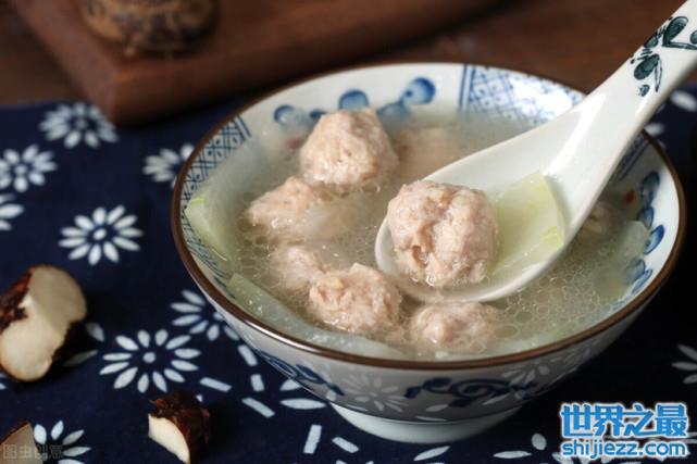 汆(cuan)丸子是用猪肉陷和鸡蛋做成的丸子,瘦肉馅磕入鸡蛋调味后顺时针搅拌,凉水下锅煮至飘起来即可,再往锅中下入泡发的木耳,冬瓜等蔬菜煮熟,丸子鲜嫩,松香可口,搭配蔬菜营养丰富。