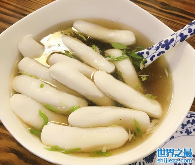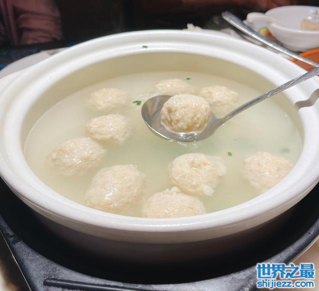 酸汤鱼圆是一道盛行于洪泽湖水域附近的经典淮扬菜。蒋坝的鱼圆是长条状而不是圆的,汤头十分鲜美,而且鱼味很浓郁,口感也是软糯Q弹的,酸汤鱼圆还是很好吃的。
