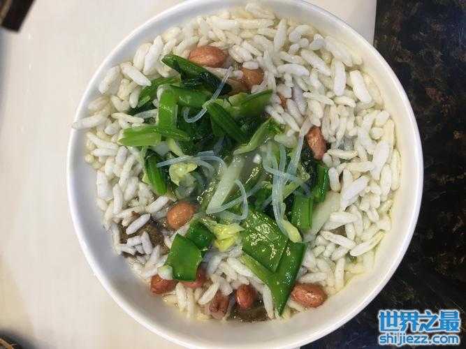菜茶是广东汕尾的一道传统小吃,它是一款有“料”的茶,这道菜茶主要是用十几种蔬菜,搭配上5种以上的肉食,用烧开的热汤茶冲泡,最上边撒上炒米和花生,而里边的胡椒粉就是“灵魂”。虽然看着很平淡,但是每吃上一口都是“惊喜”,给人感觉就像是在“寻宝”,用勺子挖着吃,汤和配料在一起,吃着很过瘾。
