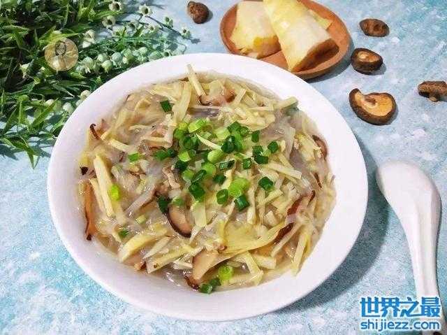 武夷笋燕出自于福建延平,是一道独具特色的菜肴,背后有着古老的历史背景。这道菜对于刀功特别讲究,需将笋切成特别细的丝状,然后将粉丝煮好捞出备用,热油将笋放入翻炒,再放入粉丝和各种调料调味,最后用淀粉水进行勾芡即可,出锅时也可撒点葱花提香,吃起来鲜香美味。