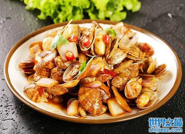 南通炒文蛤是江苏南通的一道传统名菜,人称“天下第一鲜”,因为文蛤肉含有丰富的氨基酸和琥珀酸,味道非常鲜美,因此而得名。文蛤是贝类海鲜中的上品,肉嫩味鲜。南通人把炒文蛤也叫作“跳文蛤”,意思就是猛火快炒,炒出来的文蛤饱满柔嫩,鲜嫩多汁。