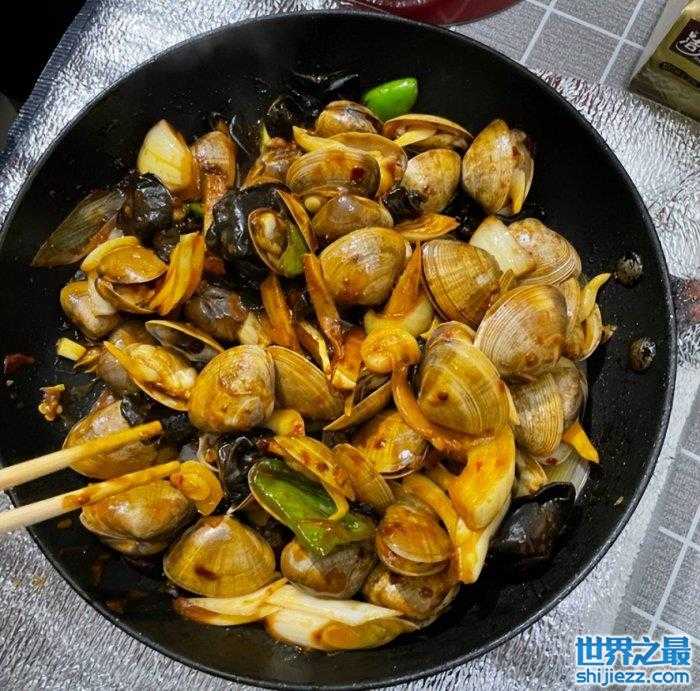 丹东的黄蚬子绝对是蚬子界头号选手,这点已经得到了众多沿海城市人民的认证,不仅个头大,黄蚬子味道也更鲜更肥美,清甜可口!黄蚬子更鲜美的吃法是热锅烧油,倒入蚬子,加两勺沙茶酱,等开口后加盖闷2-3分钟就可以啦,蚬肉饱满弹牙,汁水鲜甜,吃起来就像发现了宝藏,看着就让人垂涎欲滴!
