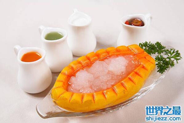 木瓜炖雪蛤是以木瓜、雪蛤和鲜奶为主要食材制成的,具有较丰富营养价值、吃起来美味可口特点的粤菜系传统名点,常吃具有润肤养颜的功效,菜品中放置的雪蛤内部含有多种人体所需的微量元素、氨基酸和维生素。