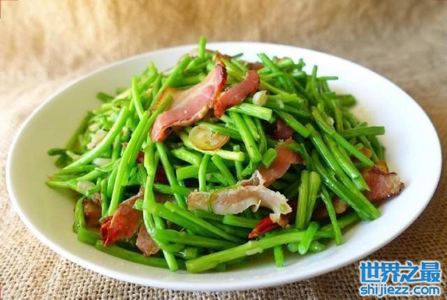 “蒌蒿满地芦芽短,正是河豚欲上时”。这首诗写的极为美妙。蒌蒿,又名芦蒿、水艾、水蒿等。这春天独有的应季美食,吃一口,会有把春天吃进肚子里的感觉。咸香柔韧的腊肉,愈发衬出藜蒿特立独行的香气。