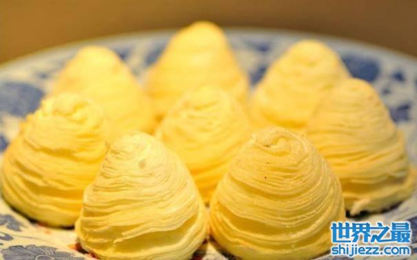 吴山酥油饼是杭州的著名面食,这种酥油饼主要是用面粉掺上白糖制成上尖下圆,似金山样的饼,经过花生油炸制而成,看着层层叠叠,就像是一座座小山,入口酥脆不碎,号称“吴山第一点”。