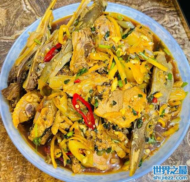 柠檬鸭是南宁的特色菜,在南宁,柠檬鸭除了生炒柠檬鸭之外,还有另外一种做法,就是把它白切凉拌。就是把整只鸭肉放进锅里煮熟,取出来,砍成块,最后加入各种各样的香料搅拌均匀,味道清新酸爽,凉拌做法更大的保留了柠檬和鸡皮果的香味,陈年的盐渍柠檬是柠檬鸭的灵魂,而且腌制年份越久就越香。
