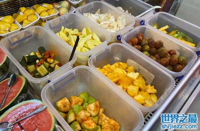 南宁酸嘢是是广西地方传统名小吃,尤以南宁最为著名,已有300年历史。在广西人眼中万物皆可酸,制作的过程比较简单,将各种果蔬装入容器中,然后将酸醋、辣椒粉、白糖调味粉撒入摇晃均匀,这样一份美味鲜果酸就制作而成了。适合没有食欲的夏天,酸嘢那个,脆爽可口,口感奇特又刺激,非常上头!
