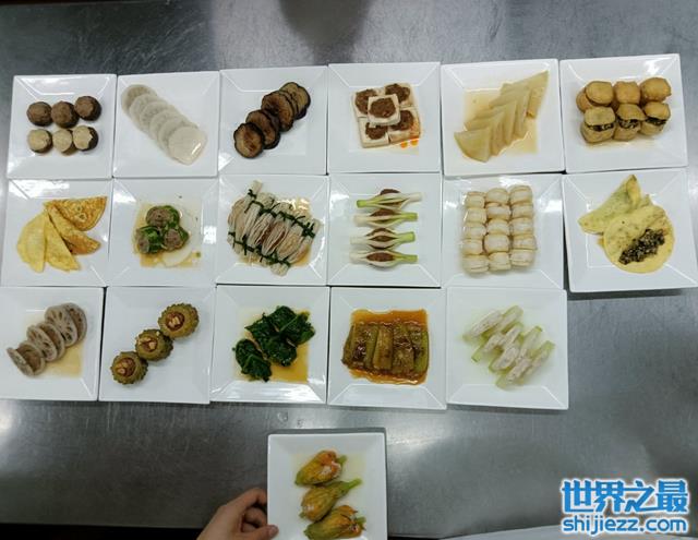 小编我之前见识过平乐的酿菜,这里的十八酿毫不逊色,精致而有特色,食过无不啧啧称赞。其实酿菜在桂林地区很兴盛,是用十八种(现在已远远不止18种)不同的原料作为酿壳, 酿菜的馅料以肉馅为主,取精肉沫与韭菜、香菇等拌成馅料,是广西桂林地区民间特色美味佳肴。