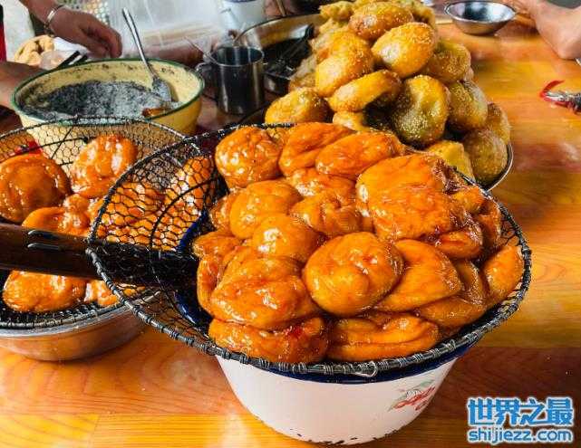 水油堆是广西柳州市洛满镇的特色名小吃,看了直流口水!本来普普通通的糯米,用最普通的水调和,不需发酵,在一个合适的时候投入高温的油中,高温出油,出锅时在金黄油堆裹上了糖油,再撒上香芝麻,放入黄糖姜水中,就成为了水油堆,甜甜绵绵,口感像初恋,粘得刚合适。