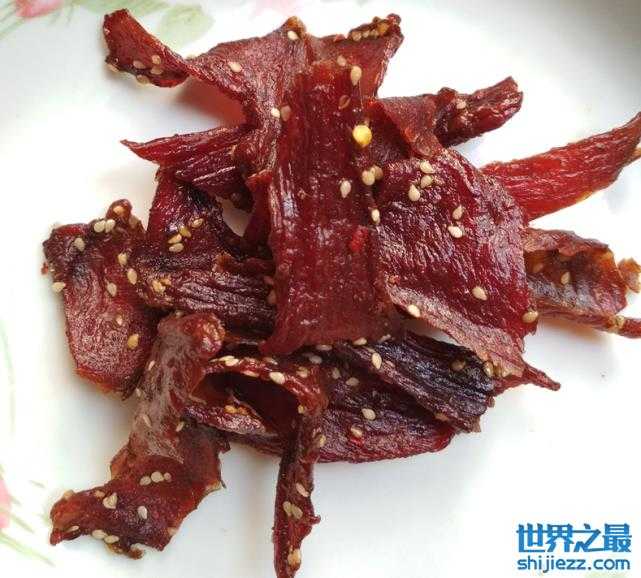 广西柳州有道特色名小吃叫牛腊巴,牛腊巴用黄牛肉而制,牛肉经锋利刀刃分割薄如蝉翼的肉片后,加以数十种名贵香料腌制后,贴于竹上晾晒,再经多道工序加工后而制成。小编我第一次吃牛腊巴是小时候在火车上我爸给我买的,肉质口感无可挑剔, 一般给外省的朋友推荐的特色美食必定有它!你喜欢吃吗?