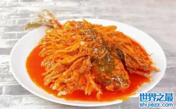 河北名菜——金毛狮子鱼,河北石家庄的传统名菜,属于冀菜系。金毛狮子鱼以鲤鱼为主要材料,用鲤鱼加工修饰后,炸制而成。成菜色泽金黄,酸甜可口,鱼丝蓬松形似狮子,故名金毛狮子鱼。始于民国初期,最早由石家庄市的中华饭庄名厨袁清芳创制。