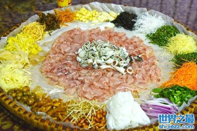 横县鱼生这道菜,也是广西有名的美食佳肴。鱼生,又叫做生鱼片。早在几千年前,国内就有很多人去尝试品尝过这种美食。所以要说吃生鱼片这件事,我们中国人才算是祖宗。横县鱼生,在做法上就极为独特,需要将新鲜鱼肉处理好,再配上各样的调料配菜才能端上桌。