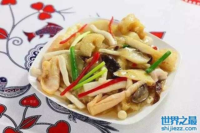 这是一道河北张家口一种传统的菜肴,主要的材料其实就是口蘑和竹笋为主,切成薄片,倒进油锅大火煸炒,加上调料和鲜汤,烧开之后勾芡,最后淋上准备好的鸡油即可,味道鲜美爽口,香味浓烈,颜色呈银红。