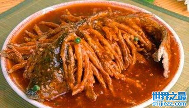 金毛狮子鱼是一道河北石家庄的传统名菜,属于冀菜系。做法也是比较简单的,用鲤鱼经过修饰和加工,煎炸制成,颜色金黄、鱼丝比较蓬松性状就像狮子,味道酸甜可口,非常好吃。