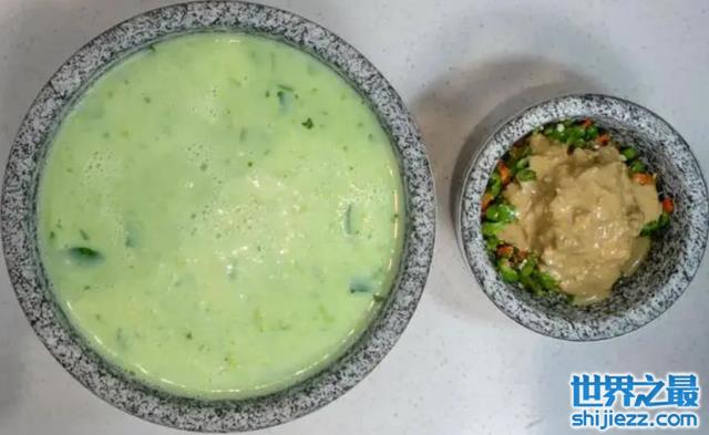 盘州青豆腐有人说它是一道“奇葩”美食,因为这种青豆腐主要是用青豆和嫩南瓜制成的,做好的豆腐色泽碧绿,闻着清香,吃到嘴中鲜嫩爽口,还有着清热解毒的食疗功效,也是当地的一大特色。