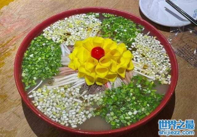 牡丹燕菜是河南洛阳的特色名菜,选用白萝卜、鸡肉等食材上笼蒸透,摆成牡丹花的造型,颜值爆表,酸辣香郁,爽滑适口,正宗的牡丹燕菜是酸辣口味的,它的辣是胡椒的辣,不是辣椒的那种辣,它是一道酸辣爽口,解腻开胃的汤菜,本地人大部分都很喜欢,很多外地游客也赞不绝口。