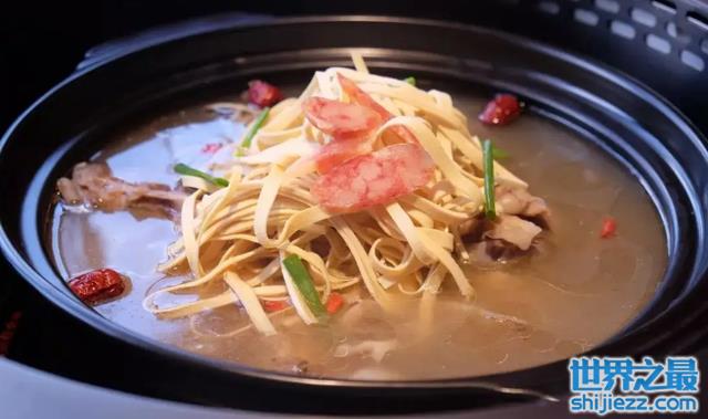 兰溪牛肉面是浙江金华兰溪的一道非遗美食,这碗牛肉面很有特色,面条呈棱形,吃着有嚼劲,柔韧爽滑,且恰到好处的吸收了汤汁的精华。每一份面都是现烧的,每吃上一口,都能吃到那种浓郁喷香的酱汁。这碗兰溪牛肉面还被邓超评价为“世界上最好吃的面”。