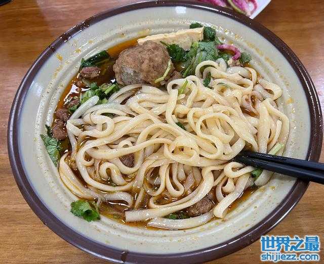 大同刀削面是山西省大同市的一道特色小吃,是多少身在外乡的山西人魂牵梦绕的家乡味道,在大街上的饭馆里很常见,刀削面外薄中厚,棱角分明,光滑软筋,加上肥而不腻的扒肉条,卤煮的鸡蛋,一条香干,再配上烂腌菜,一碗面食,让你的味蕾大开,想想就让人欲罢不能。