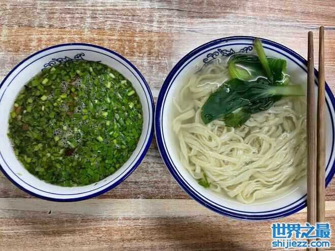 陕西户县最有名的饭,就是摆汤面,一碗面讲究薄筋光,一碗汤酸香浓郁!面在水里泡着,吃时夹到另一个韭菜臊子或鸡蛋饼丝等烩成的臊子汤,汤汁酸香味浓沾了汤汁,挂满韭菜,再嗦入嘴里,如此往返,香浓清淡,一碗摆汤面下肚,别提多舒服!