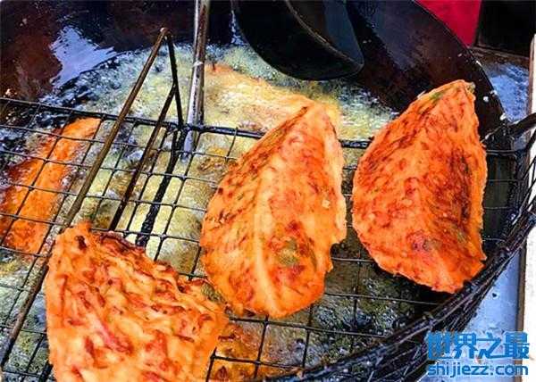 萝卜饺子是湖北宜昌市著名的特色小吃,萝卜饺子绝不是普通饺子的样子,原料相同,工艺差得可不是一点。萝卜擦丝拌味,面粉打糊,借助模具,用面糊裹住萝卜丝,还有调料搅拌了一起入油锅炸制而成,油炸过后趁热吃,会有一种独特的酥脆感,外酥里嫩,一个就管饱。