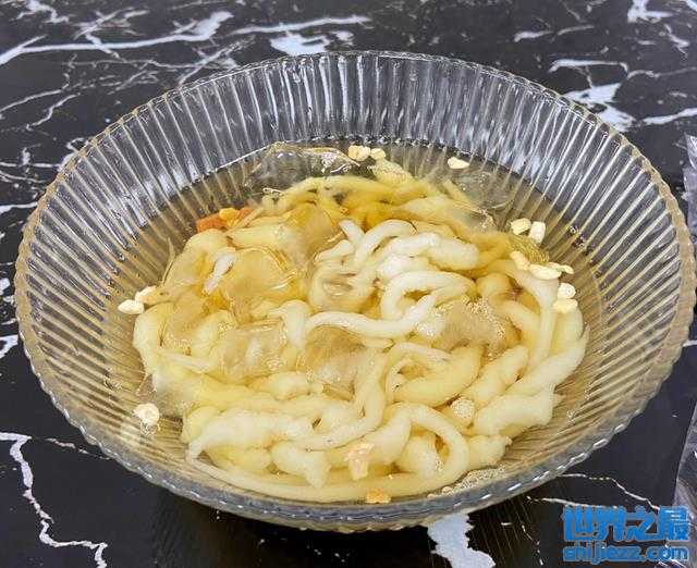 你们喝过凉虾吗?当地朋友说来宜昌必喝它,凉虾是湖北宜昌十分常见的特色饮品,刚开始小编我认为是真的虾,结果,哈哈哈,凉虾采取本土优质天然大米熬桨煮熟,用漏勺放入凉水盆中,形状会变成头大尾细很像虾,很适合夏天喝,口感清香爽口,解暑效果不错,是宜昌人最难忘怀的味道之一。