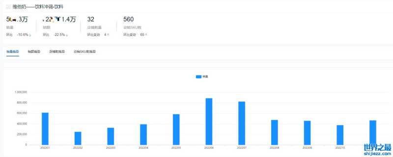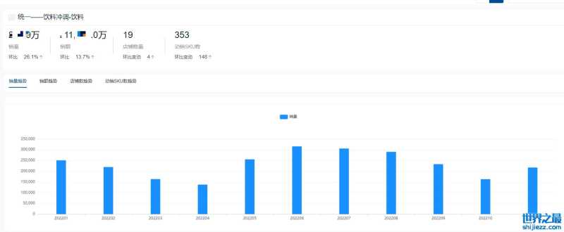 据统计,统一品牌饮料全年的总销量超254万件,总销售额超1.1亿元。2022年6月,统一饮料的销量全年最高,总销量达31.5万件。