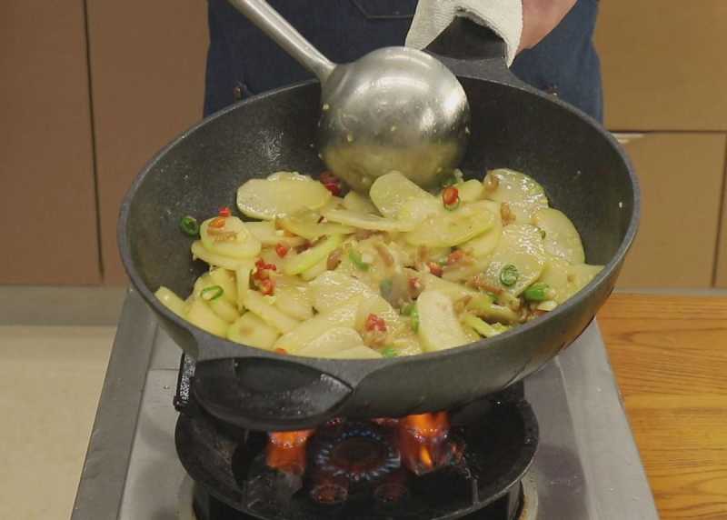 淋入明油提亮色泽, 翻匀后就可以出锅了。