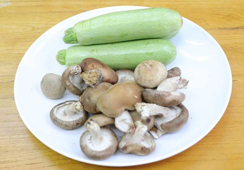 烧半锅开水,淋入少许植物油锁住营养保持翠绿,加入少许食盐增加底味,把香菇放进去汆煮一下去除土腥味,大约煮1分钟,香菇表面微微透明以后再倒入西葫芦,继续汆煮30秒钟,西葫芦断生返青以后倒出来,并迅速地用凉水冲洗过凉,这样西葫芦吃起来更加清脆,香菇也不容易流失太多的鲜味。
